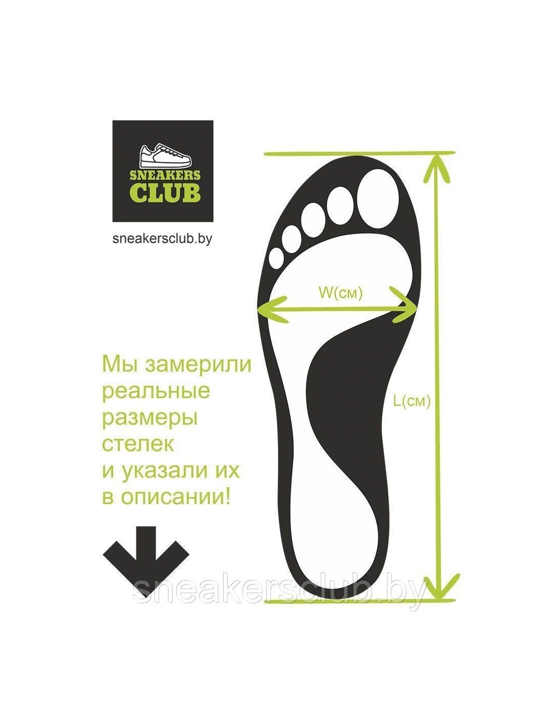 Длина(L) и ширина(W) размерного ряда для данной модели в CM: